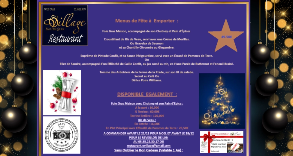 Découvrez chez Ô Village une variété de recettes traditionnelles pour le plaisir des grands et des petits : Tartare de Boeuf Limousin, Salade Corrézienne, Souris d'Agneau Confite au Thym, burgers faits maison… Nous vous proposons également différentes formules gourmandes à des tarifs raisonnables. Les enfants (moins de 12 ans) pourront profiter de notre menu à 9.90 € : Steak Haché de Boeuf, Steak de Poulet Pané, Frites Maison…